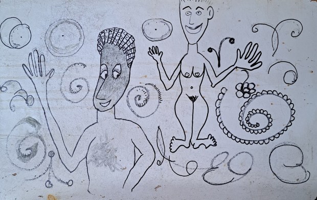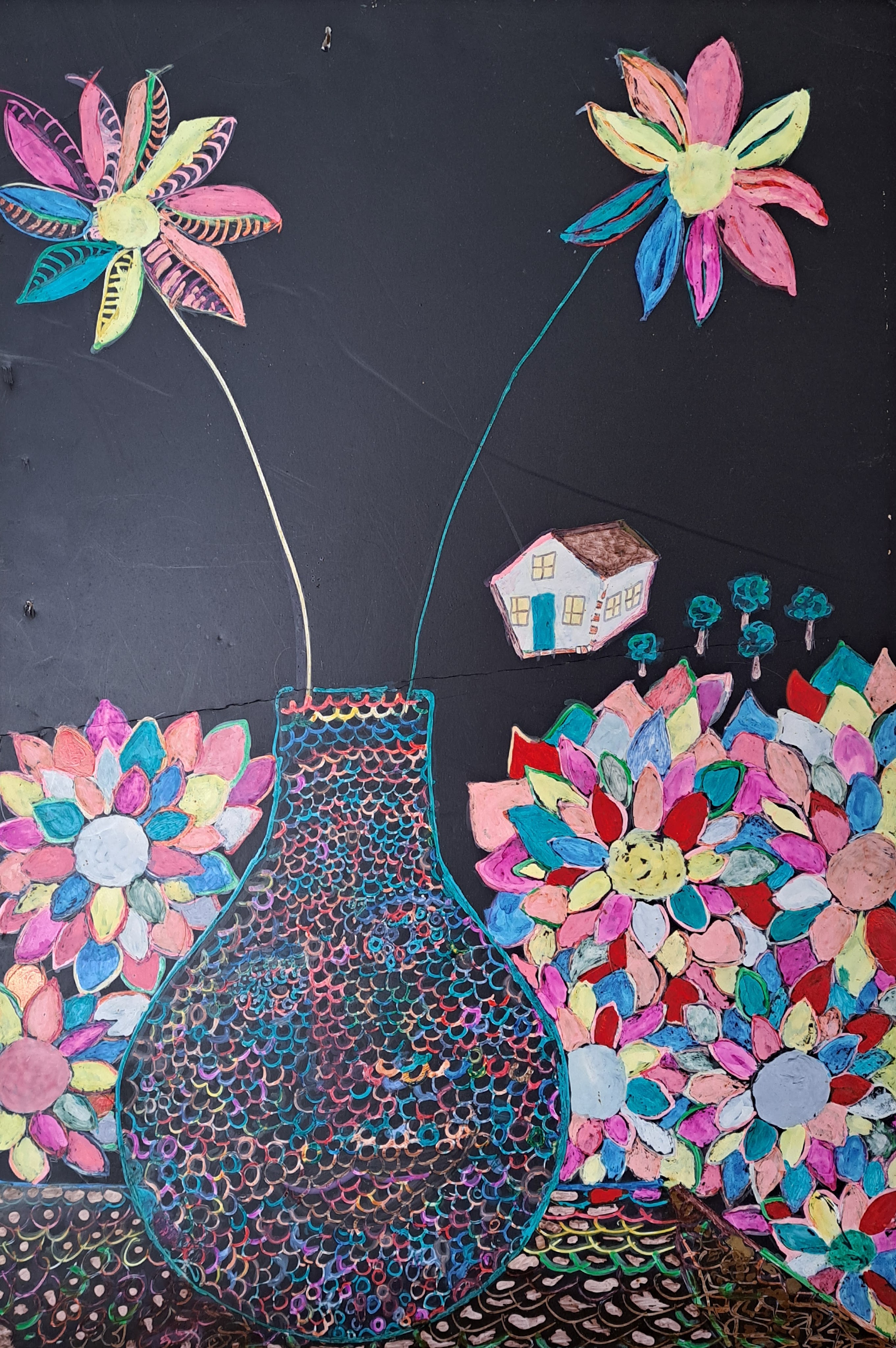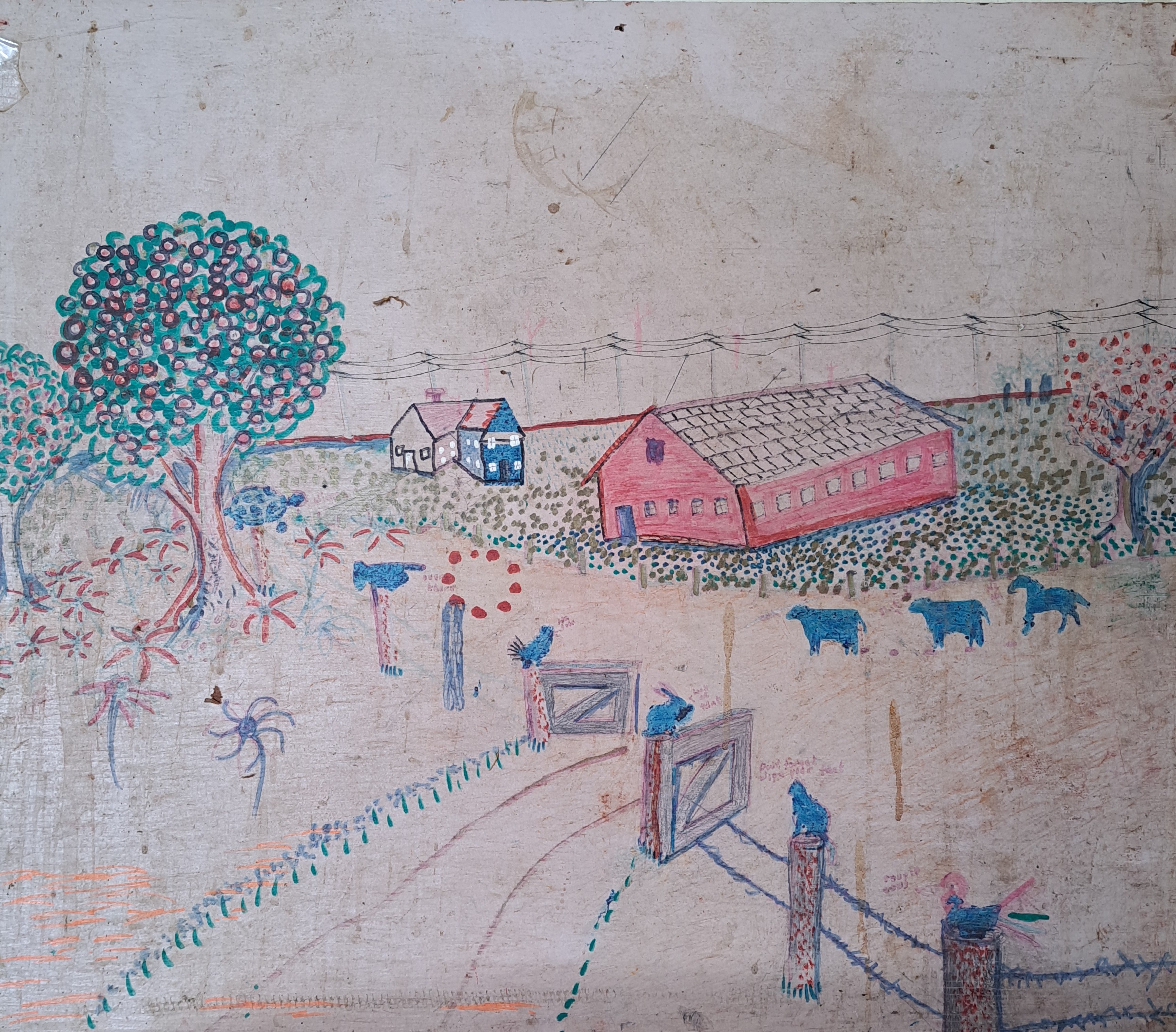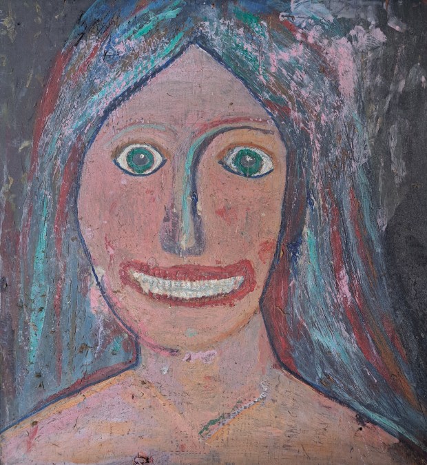 I’ve been cleaning out Earle’s house over the past couple of months, and have been putting aside most of his paintings. Some were in too bad a condition to keep and had to be tossed. Most of what remain are in some form of disrepair – dirty, dusty, torn, grimy, or worse. They all could use a good, gentle cleaning. They come in all sizes, from a few inches by a few more inches, to a few feet by a few more feet. Some are painted on canvas, some on other types of material, some on cardboard, and some are painted right on the walls of his house.
